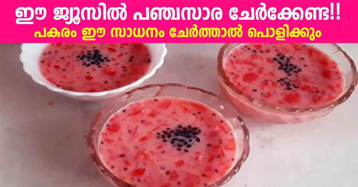ഈ ജ്യൂസിൽ പഞ്ചസാര ചേർക്കേണ്ട. പകരം ഈ സാധനം ചേർത്താൽ പൊളിക്കും. ഇത് എല്ലാവർക്കും ഇഷ്ടമാകും. തയ്യാറാക്കുന്നത് എങ്ങനെയെന്നു താഴെ കൊടുത്തിരിക്കുന്ന വീഡിയോയില് വിശദമായി കാണിച്ചു തരുന്നുണ്ട്. വീഡിയോ നോക്കി അതുപോലെ നിങ്ങളും ഉണ്ടാക്കി നോക്കൂ. മറ്റുള്ളവര്ക്കു കൂടി ഈ പോസ്റ്റ് എത്തിച്ചു കൊടുക്കാൻ മറക്കരുത്. വ്യത്യസ്തങ്ങളായ രുചികൂട്ടുകള് ദിവസവും നിങ്ങൾക്ക് ലഭിക്കുന്നതിനു തട്ടുകട ഫെയിസ്ബുക്ക് പേജ് ഫോള്ളോ ചെയ്ത ശേഷം Following എന്ന ബട്ടണിൽ ക്ലിക്ക് ചെയ്ത് See First എന്നതും സെലക്ട് ചെയ്യുക. കൂടുതല് വീഡിയോകള്ക്കായി Ruchi Ruchi ചാനല് Subscribe ചെയ്യൂ.