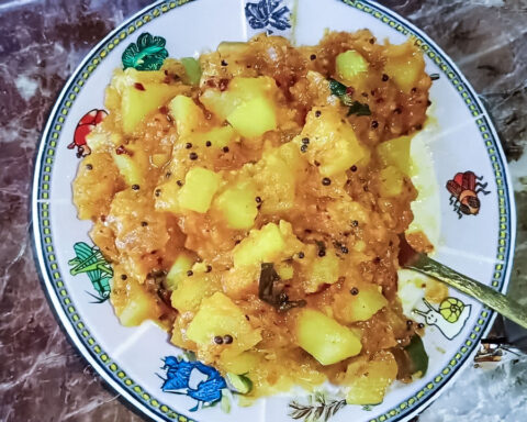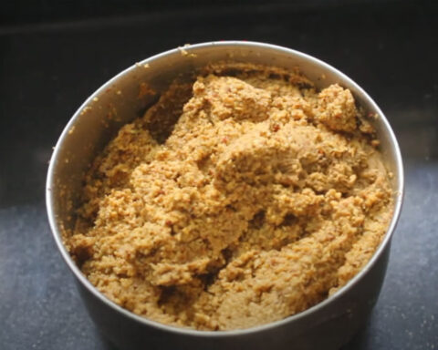 വെള്ളം തിളയ്ക്കുമ്പോള് തീയണച്ച് അരിപ്പൊടി കുറേശ്ശെ കുടഞ്ഞിട്ട് ഇളക്കി വയ്ക്കുക. ചെറുചൂടോടെ, നല്ല മയത്തില് കുഴച്ചെടുക്കുക.ശര്ക്കര പാനിയാക്കിഅരിച്ചെടുക്കുക. ചീനച്ചട്ടി ചൂടാകുമ്പോള് ശര്ക്കരപ്പാനി അതിലൊഴിച്ച് നാളികേരം ചിരകിയതു ചേര്ത്ത് വെള്ളം വറ്റും വരെ വിളയിച്ചെടുക്കുക.