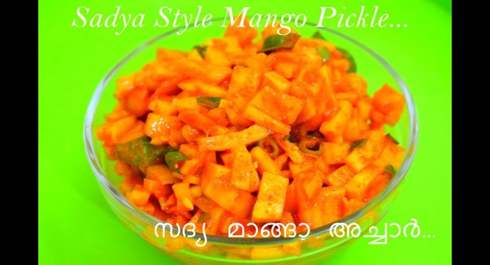നിമിഷനേരംകൊണ്ട് സദ്യക്ക് വിളമ്പുന്ന മാങ്ങാ അച്ചാർ.ഇത് കുട്ടികൾ മുതൽ മുതിർന്നവർ വരെയുള്ള എല്ലാവർക്കും വളരെയധികം ഇഷ്ടമാകും. തയ്യാറാക്കുന്നത് എങ്ങനെയെന്നു താഴെ കൊടുത്തിരിക്കുന്ന വീഡിയോയില് വിശദമായി കാണിച്ചു തരുന്നുണ്ട്.