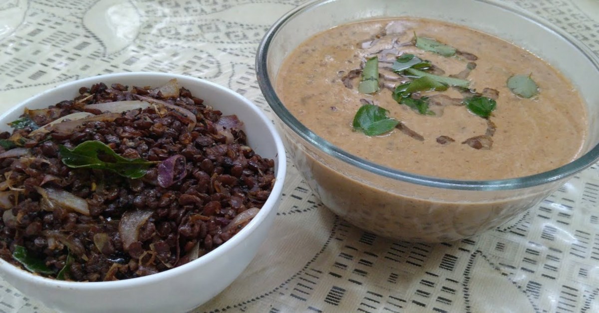 മുതിര ഉലർത്തിയതും മുതിര കറിയും.