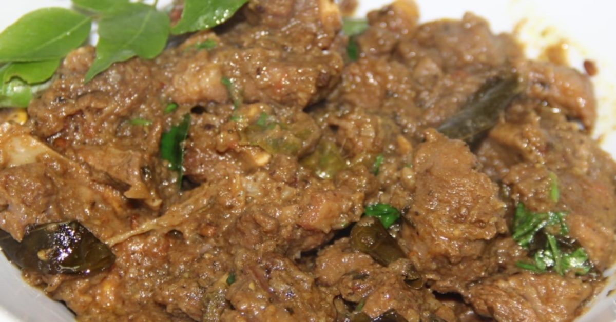 ബീഫിലേക്ക് മൂന്നാമത്തെ ചേരുവ ചേർത്തു യോജിപ്പിച്ചു വെക്കുക..ഒരു പ്രഷർ കുക്കറിൽ വെളിച്ചെണ്ണ ഒഴിച്ചു ചൂടാവുമ്പോൾ ഉലുവ ചേർത്തു പൊട്ടുമ്പോൾ ഉള്ളി,ചെറിയുള്ളി ചേർത്തു വഴറ്റുക…ഇതിലേക്ക് ഇഞ്ചി,വെളുത്തുള്ളി ചേർത്തു വഴറ്റി പച്ചമുളക്,കറി വേപ്പില, marinate ചെയ്ത് വെച്ച ബീഫ് എന്നിവ ചേർത്തു യോജിപ്പിച്ച ശേഷം കുക്കർ മൂടി ഒരു whistle വന്ന ശേഷം 20മിനിറ്റ് sim ആക്കി വെക്കുക…പ്രഷർ പോയ ശേഷം കുക്കർ തുറന്ന് വറ്റിച്ചെടുക്കുക…അല്പം മല്ലിയില തൂവി സെർവ് ചെയ്യാം.