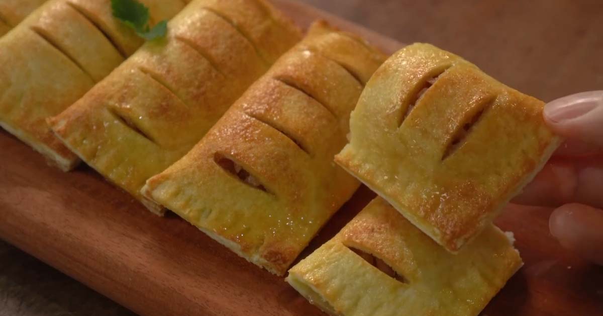 ഇത് തയ്യാറാക്കാനായി ഒരു ആപ്പിൾ എടുത്തു വളരെ ചെറിയ കഷ്ണങ്ങളായി കട്ട് ചെയ്യുക, ഒരു പാൻ എടുത്ത് ചൂടാക്കി അതിലേയ്ക്ക് ബട്ടർ ചേർത്ത് കൊടുക്കണം,melt ആയതിനുശേഷം ആപ്പിൾ കഷണങ്ങൾ അതിലേക്ക് ചേർത്തു കൊടുക്കാം, ഒരു ടേബിൾ സ്പൂൺ ഷുഗറും, ഒരു ടേബിൾ സ്പൂൺ തേനും ഇതിലേക്കു ചേർത്ത് വീണ്ടും നന്നായി മിക്സ് ചെയ്യാം, ഫ്രൈ ആയാൽ തീ ഓഫ് ചെയ്യാം. ബ്രഡ് സ്ലൈസ് എടുത്ത് സൈഡ് റിമൂവ് ചെയ്തതിനുശേഷം റോളർ ഉപയോഗിച്ച് പരത്തുക.ഒരു ബൗളിലേക്ക് ഒരു മുട്ട പൊട്ടിച്ച് ചേർത്ത് ഒന്ന് ബീറ്റ് ചെയ്യുക. എടുത്തു വച്ചിരിക്കുന്ന ബ്രഡ് സ്ലൈസ് എടുത്തു അതിനു മുകളിലേക്ക് മുട്ട ബ്രഷ് ചെയ്തു കൊടുക്കാം ശേഷം ഒരു സൈഡിൽ ആയി ആപ്പിൾ മിക്സ് വെച്ചു കൊടുക്കുക, ഒരു കത്തി ഉപയോഗിച്ച് ഫ്രീ സ്പെയ്സിൽ ചെറുതായി വരഞ്ഞതിനുശേഷം മടക്കി കൊടുക്കാം, ഒരു ഫോർക്ക് ഉപയോഗിച്ച് സൈഡ് വീണ്ടും ഒന്ന് ഫോൾഡ് ചെയ്യാം, വീണ്ടും മുട്ട ബ്രഷ് ചെയ്തു കൊടുക്കണം, ഇനി ഓവനിൽ വെച്ച് ബേക്ക് ചെയ്തെടുക്കാം.
