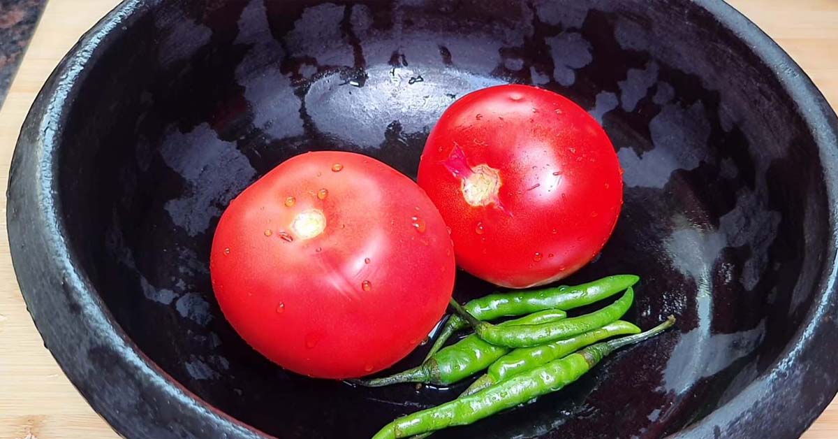 ഒരു മൺചട്ടിയിലേക്ക് രണ്ട് തക്കാളി ചെറുതായി അരിഞ്ഞതും, 4 പച്ചമുളക് കീറിയതും ,മൂന്നോ നാലോ ചെറിയ ഉള്ളി ചെറുതായി കട്ട് ചെയ്തതും ചേർക്കാം ആവശ്യത്തിനുള്ള ഉപ്പും, അല്പം മഞ്ഞൾപ്പൊടി ,അല്പം മുളകുപൊടി എന്നിവയും ചേർത്ത് നന്നായി മിക്സ് ചെയ്യുക, ശേഷം മുങ്ങി കിടക്കാൻ പാകത്തിന് വെള്ളം ഒഴിച്ച് നന്നായി വെന്തു ഉടയുന്നത് വരെ വേവിച്ചെടുക്കുക. ഇതിലേക്കുള്ള അരപ്പ് തയ്യാറാക്കാം, അതിനായി ഒരു മിക്സിയുടെ ജാറിലേക്ക് കാൽ കപ്പ് തേങ്ങ അല്പം മഞ്ഞൾപൊടി, ചെറിയ ജീരകം എന്നിവ ചേർത്ത് കൊടുത്ത് അല്പം മോരൊഴിച്ച് നന്നായി അരച്ചെടുക്കുക, തക്കാളി നന്നായി ഉടച്ചു കൂട്ടിയതിനു ശേഷം ഈ അരപ്പ് ചേർക്കാം, ആവശ്യമെങ്കിൽ വെള്ളവും ചേർക്കാം, നന്നായി ചൂടാവുമ്പോൾ അല്പം കറിവേപ്പില ഇതിലേക്ക് ചേർത്ത് നന്നായി തിളപ്പിച്ച് എടുക്കണം, നന്നായി തിളച്ച് ചാറ് കുറുകി വരുമ്പോൾ വെളുത്തുള്ളി ചതച്ചതും, കുറച്ചുകൂടി കറിവേപ്പിലയും ചേർത്ത് ഓഫ് ചെയ്യാം.