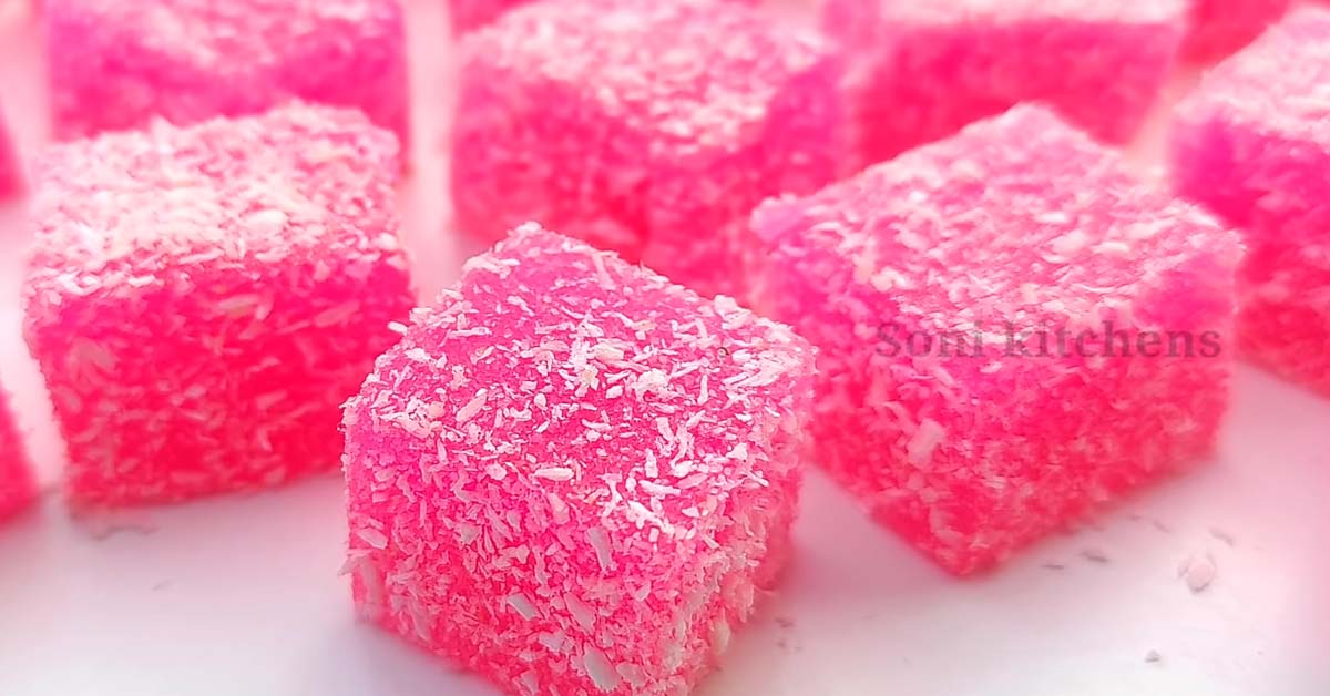 ആദ്യം ഒരു പാൻ അടുപ്പിൽ വച്ച് അരക്കപ്പ് വെള്ളവും, ഒരു കപ്പ് പഞ്ചസാരയും ചേർക്കുക നല്ലതുപോലെ തിളച്ചു പഞ്ചസാര എല്ലാം അലിയുമ്പോൾ അര ടീസ്പൂൺ നാരങ്ങാനീര് ഇതിലേക്ക് ചേർത്ത് കൊടുക്കുക, ഒരു നൂൽ പരുവം ആകുമ്പോൾ തീ ഓഫ് ചെയ്യാം. മറ്റൊരു പാനിലേക്ക് ഒന്നര ടേബിൾ സ്പൂൺ ആരോറൂട്ട് പൗഡർ ചേർത്തുകൊടുത്തതിനുശേഷം ഒരു കപ്പ് വെള്ളമൊഴിച്ച് മിക്സ് ചെയ്യുക, ശേഷം സ്റ്റൗ ഓൺ ചെയ്ത് കുറുക്കിയെടുക്കാം, ഇതിലേക്ക് ഷുഗർ സിറപ്പ് ഒഴിച്ചുകൊടുത്ത് മിക്സ് ചെയ്ത് നന്നായി ഇളക്കുക, നല്ല കട്ടിയായി വരുമ്പോൾ ഇതിലേക്ക് പിങ്ക് ഫുഡ് കളർ ചേർക്കാം കൂടെ വാനില എസൻസും ചേർത്ത് നല്ലതുപോലെ ഇളക്കി യോജിപ്പിക്കുക, ഒരു ടീസ്പൂൺ ബട്ടർ കൂടി ചേർത്ത് എല്ലാം കൂടി നന്നായി യോജിപ്പിച്ചു കൊടുക്കാം, നല്ല കട്ടിയാകുമ്പോൾ ഒരു സ്ക്വയർ ഷേപ്പിൽ ഉള്ള കണ്ടെയ്നറിലേക്ക് മാറ്റി കൊടുക്കാം, നന്നായി സെറ്റ് ആയി കഴിയുമ്പോൾ പാത്രത്തിൽ നിന്നും മാറ്റി ഡെസിക്കേറ്റഡ് കോക്കനട്ട് മുകളിലേക്ക് വെച്ചുകൊടുക്കണം, ഇനി ചെറിയ കഷണങ്ങളായി മുറിച്ച് ഡെസിക്കേറ്റഡ് കോക്കനട്ട് നന്നായി കോട്ട ചെയ്തെടുത്ത കഴിക്കാം.
