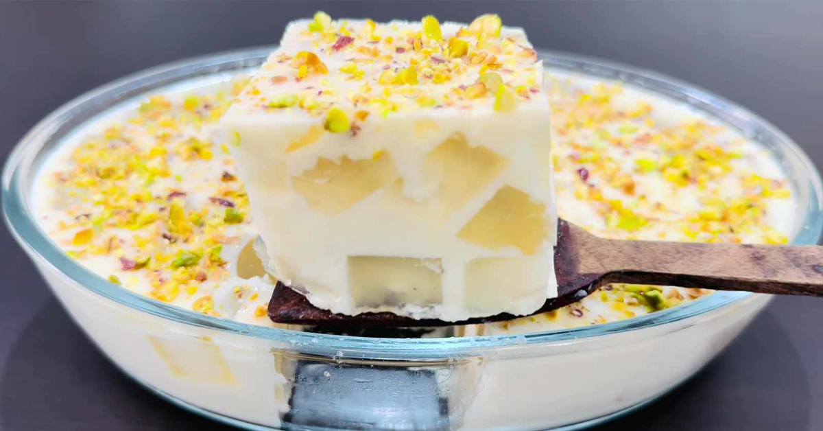 ആദ്യം കോക്കനട്ട് ജെല്ലി തയ്യാറാക്കാം ഇതിനായി ഒരു ബൗളിലേക്ക് കരിക്ക് വെള്ളം പഞ്ചസാര എന്നിവ എടുത്ത് മിക്സ് ചെയ്യുക ഇതിലേക്ക് ചൈന ഗ്രാസ് ചേർത്ത് കൊടുത്ത് കുറച്ച് സമയം സോക്ക് ചെയ്തതിനുശേഷം ഒരു പാനിലേക്ക് മാറ്റാം നന്നായി തിളപ്പിച്ചതിനു ശേഷം ഒരു പരന്ന ഗ്ലാസ് കണ്ടൈനറിലേക്ക് അരിച്ച് ഒഴിച്ചു കൊടുക്കാം ഇത് രണ്ടു മണിക്കൂർ മാറ്റിവെക്കുക ശേഷം ചെറിയ കഷണങ്ങളായി മുറിച്ചെടുക്കാം. മറ്റൊരു പാത്രത്തിൽ 10ഗ്രാം ചൈനാഗ്രാസ് വെള്ളത്തിൽ കുതിർക്കാൻ വയ്ക്കുക ഒരു പാനിലേക്ക് പാല് പഞ്ചസാര പാൽപ്പൊടി വാനില എസൻസ് എന്നിവ ചേർത്ത് മിക്സ് ചെയ്ത് തിളപ്പിക്കുക കണ്ടൻസ് മിൽക്ക് കൂടി ചേർക്കണം കുതിർത്ത ചൈന ഗ്രാസ് ഒന്ന് തിളപ്പിച്ചതിനുശേഷം ഈ പാലിലേക്ക് അരിച്ചു ഒഴിക്കാം ശേഷം തീ ഓഫ് ചെയ്യണം തെറ്റ് ചെയ്യുന്ന പാത്രത്തിലേക്ക് ഇത് ഒഴിച്ചു കൊടുക്കാം കൂടെ ജെല്ലിയും ചേർക്കണം മുകളിലായി ക്രഷ് ചെയ്ത പിസ്ത കൂടി ഇട്ട് രണ്ടു മണിക്കൂർ റസ്റ്റ് ചെയ്യാൻ വയ്ക്കുക ശേഷം മുറിച്ചെടുത്ത് വിളമ്പാം