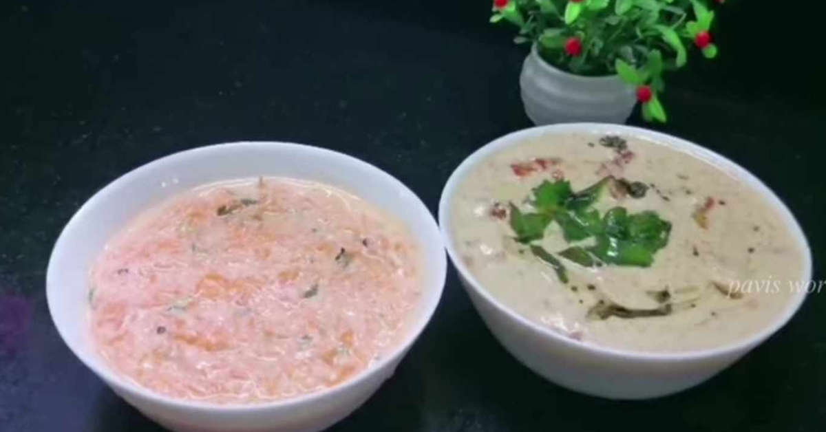 രണ്ടാമത്തെ വിഭവം ക്യാരറ്റ് ഉപയോഗിച്ചാണ് തയ്യാറാക്കുന്നത് ഇത് തയ്യാറാക്കാനായി തീ പോലും കത്തിക്കേണ്ട ആദ്യം ക്യാരറ്റ് ഗ്രേറ്റ് ചെയ്ത് എടുക്കുക ഇതിലേക്ക് പച്ചമുളക് അരിഞ്ഞതും ഉപ്പും ചേർത്ത് മിക്സ് ചെയ്യണം ശേഷം നല്ല കട്ട തൈര് ചേർത്ത് യോജിപ്പിക്കാം കുറച്ചു മല്ലിയില കൂടി ചേർത്ത് മിക്സ് ചെയ്താൽ അടിപൊളി കിച്ചടി തയ്യാറായി