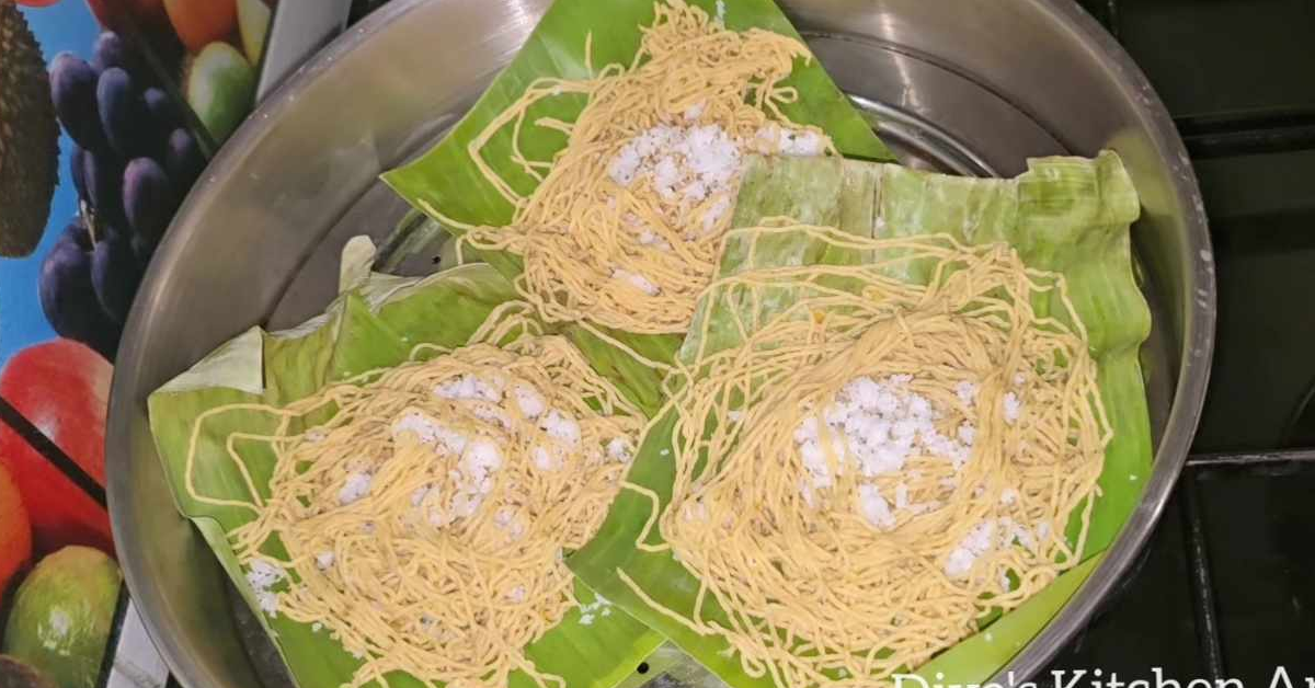 ആദ്യം രണ്ടു നേന്ത്രപ്പഴം എടുത്ത് ആവിയിൽ നന്നായി വേവിച്ചെടുക്കുക ശേഷം ഇതിനെ മിക്സി ജാറിലേക്ക് മാറ്റി കുറച്ചു പഞ്ചസാരയും ഏലക്കായും ചേർത്ത് നന്നായി അരച്ചെടുക്കാം ഈ പേസ്റ്റിനെ ഒരു ബൗളിലേക്ക് മാറ്റിയശേഷം ആവശ്യാനുസരണം ഗോതമ്പുപൊടി ചേർത്ത് കുഴച്ചെടുക്കാം ഇടിയപ്പത്തിന് കുഴക്കുന്ന പരുവത്തിൽ ആക്കി എടുക്കണം വിശേഷം ഇടിയപ്പ പ്രസ്സിലേക്ക് ഇത് നിറയ്ക്കുക ഇനി വാഴ ഇലയിലേക്ക് പ്രസ് ചെയ്തു കൊടുക്കാം, ആവശ്യമെങ്കിൽ തേങ്ങയും ചേർക്കാം ഇനി നന്നായി ആവിയിൽ വേവിച്ചെടുക്കുക.