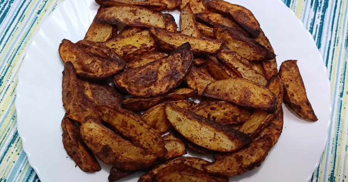 ഉരുളക്കിഴങ്ങ് നന്നായി കഴുകിയതിനുശേഷം തൊലിയോട് കൂടി തന്നെ ബോട്ട് ഷേപ്പിൽ കട്ട് ചെയ്ത് എടുക്കുക ഒരു ഉരുളക്കിഴങ്ങ് എട്ട് കഷണങ്ങളാണ് ആക്കേണ്ടത് ശേഷം ഐസ് ഇട്ട വെള്ളത്തിൽ 10 മിനിറ്റ് മുക്കി വയ്ക്കാം, ശേഷമെടുത്ത് ടവ്വൽ ഉപയോഗിച്ച് നന്നായി തുടച്ച് വെള്ളം മാറ്റുക ഇനി ഇതിലേക്ക് ഓയിൽ ഒഴിച്ച് ഒന്ന് മിക്സ് ചെയ്യാം ശേഷം മറ്റു ചേരുവകൾ എല്ലാം കൂടി ഒരുമിച്ച് ചേർക്കാം ഇതെല്ലാം നന്നായി മിക്സ് ചെയ്ത ശേഷം ഉരുളക്കിഴങ്ങിനെ കുറച്ചു സമയം മാറ്റിവയ്ക്കാം ഇനി എയർ ഫ്രൈയറിൽ ചെയ്തെടുക്കുക
