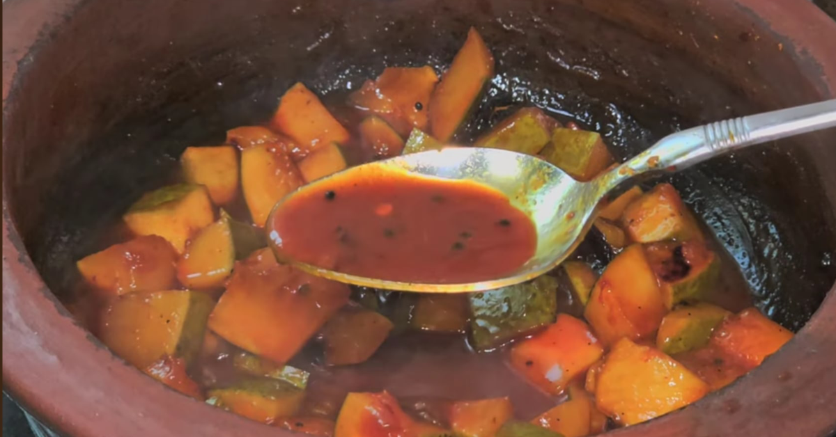 മാങ്ങ മീഡിയം വലുപ്പത്തിലുള്ള കഷണങ്ങളായി മുറിക്കുക ഒരു മൺപാൻ അടുപ്പിൽ വച്ച് കത്തിക്കുക എള്ളെണ്ണ ഒഴിച്ച് ചൂടാകുമ്പോൾ കടുകും ഉഴുന്നുപരിപ്പും ചേർത്ത് പൊട്ടിക്കാം ഉണക്കമുളക് ചേർത്ത് മൂപ്പിച്ചു കഴിഞ്ഞ് കുറച്ചു കായപ്പൊടി ചേർക്കാം ഇനി മാങ്ങ ഇട്ട് മിക്സ് ചെയ്യുക ഒന്നു വാടുമ്പോൾ മഞ്ഞൾപൊടിയും മുളകുപൊടിയും ചേർക്കാം, ശർക്കര പൊടി കൂടി ചേർത്ത് മൂടിവച്ച് നന്നായി വേവിച്ച് വറ്റിച്ചെടുക്കുക കുറച്ചു വെള്ളം കൂടി ചേർത്താൽ നല്ല പോലെ വെന്തു കിട്ടും