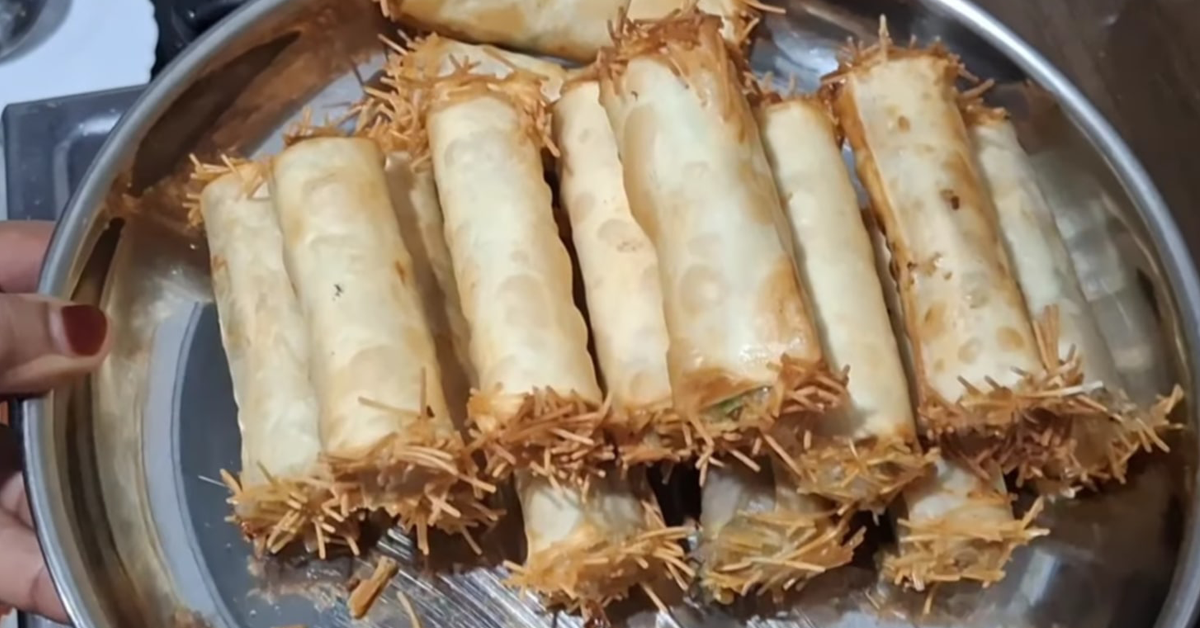 വേവിച്ചുടച്ച ഉരുളക്കിഴങ്ങിലേക്ക് കുരുമുളകുപൊടി ചതച്ച മുളക് ഉപ്പ് അരിഞ്ഞുവെച്ച പച്ചക്കറികൾ ഇവയെല്ലാം ചേർത്ത് നന്നായി മിക്സ് ചെയ്യുക. ഒരു സമൂസ ഷീറ്റിനെ രണ്ടായി മുറിച്ചെടുക്കാം ശേഷം ഓരോന്നും എടുത്ത് ഉരുളക്കിഴങ്ങ് മിക്സ് വെച്ച് കൊടുത്ത് സിലിണ്ടർ ഷേപ്പിൽ റോൾ ചെയ്യുക, രണ്ട് സൈഡും മൈദ പേസ്റ്റ് തേക്കുക ശേഷം സേമിയ രണ്ട് സൈഡും കോട്ട് ചെയ്യുക… ഇനി ചൂടായ എണ്ണയിലേക്ക് ഇട്ട് വറുത്തെടുക്കാം