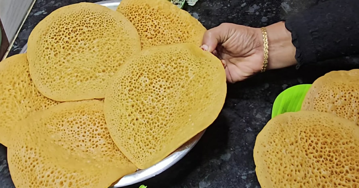 മൂടി വേവിക്കുക: ദ്വാരങ്ങൾ പ്രത്യക്ഷപ്പെട്ടതിന് ശേഷം, പാൻ മൂടി തീ കുറഞ്ഞതിലേക്ക് മാറ്റുക. അപ്പം പാകമാകുന്നത് വരെ വേവിക്കുക. അടിഭാഗം കരിയാതെ ശ്രദ്ധിക്കുക.ചൂടുള്ള അപ്പം തയ്യാറാക്കിയ ചമ്മന്തിയോടൊപ്പം വിളമ്പുക.