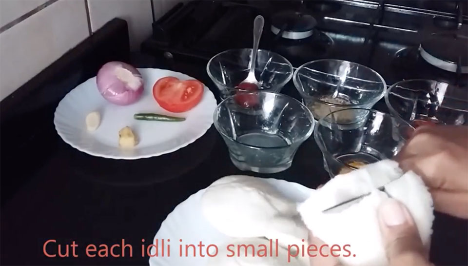 ഇഡലി മുറിച്ചു ചെറിയ pieces ആക്കുക.ഒരു പാൻ ചൂടാക്കി കുറച്ചു ഓയിൽ ഒഴിക്കുക.ഇതിലേക്ക് ഇഡലി ഇട്ടു ചെറുതായി ഫ്രൈ ചെയ്തു മാറ്റി വയ്ക്കുക.ഇതേ പാൻ ലേക്ക് കുറച്ചു കൂടി ഓയിൽ ചേർത്ത് സവോള,ഇഞ്ചി,വെളുത്തുള്ളി,പച്ചമുളക് എന്നിവ ചേർത്ത് ലൈറ്റ് ബ്രൗൺ കളർ ആകുന്ന വരെ വഴറ്റുക.ആവശ്യത്തിന് ഉപ്പും ചേർക്കുക.ഇതിലേക്ക് തക്കാളി അരിഞ്ഞതും ചേർത്ത് വഴന്നു വരുമ്പോൾ മുളകുപൊടി ,മഞ്ഞൾപൊടി ,ഗരം മസാല എന്നിവ ചേർത്ത് മൂപ്പിക്കുക.ടൊമാറ്റോ sauce കൂടി ചേർക്കുക.ഫ്രൈ ചെയ്തു വച്ച ഇഡലി യും 1/2 കപ്പ് വെള്ളവും കൂടി ചേർത്ത് ചെറുതീയിൽ മൂടി വച്ച് വേവിക്കുക.വെള്ളം എല്ലാം പറ്റി മസാല എല്ലാം ഇഡ്ലിയിലേക്കു പിടിച്ചു കഴിയുമ്പോ നാരങ്ങാ നീര് കൂടി ചേർത്ത് ഇളക്കുക.തീ ഓഫ് ചെയ്യുക.2 മിനിറ്റ് കൂടി മൂടി വച്ച ശേഷം സെർവ് ചെയ്യാം.