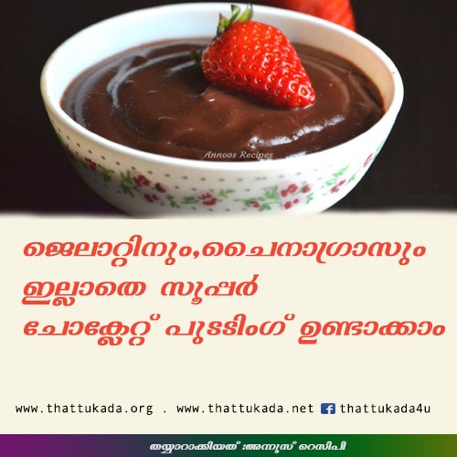 ജെലാറ്റിനും,ചൈനാഗ്രാസും ഇല്ലാതെ സൂപ്പര് ചോക്ലേറ്റ് പുടടിംഗ് ഉണ്ടാക്കാം(Chocolate pudding without Gelatin and China grass) തയ്യാറാക്കുന്നത് എങ്ങനെയെന്നു താഴെ കൊടുത്തിരിക്കുന്ന വീഡിയോയില് വിശദമായി കാണിച്ചു തരുന്നുണ്ട്. വീഡിയോ നോക്കി നിങ്ങളും ഇതുപോലെ നെയ്വട ഉണ്ടാക്കി നോക്കൂ. മറ്റുള്ളവര്ക്കു കൂടി ഈ പോസ്റ്റ് ഷെയര് ചെയ്യാന് മറക്കരുത്. വ്യത്യസ്തങ്ങളായ രുചികൂട്ടുകള് ദിവസവും ലഭിക്കുന്നതിനു ഞങ്ങളുടെ ഫെയിസ്ബുക്ക് പേജ് ലൈക്ക് ചെയ്ത ശേഷം Following എന്നതില് See First എന്നതും ആക്കുക. കൂടുതല് വീഡിയോകള്ക്കായി Annoos Recipes ചാനല് Subscribe ചെയ്യൂ.