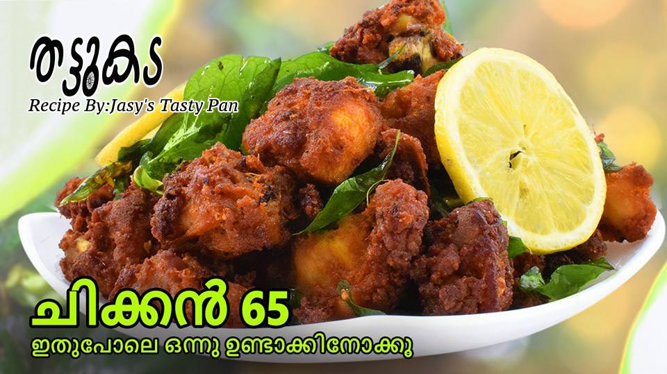 ഹോട്ടലിൽ കിട്ടുന്ന അതേ രുചിയിൽ ചിക്കൻ 65 വീട്ടിൽ നമുക്ക് വളരെ എളുപ്പത്തിൽ തയ്യാറാക്കാവുന്നതാണ് ഇത് എല്ലാവർക്കും ഇഷ്ടമാകും. തയ്യാറാക്കുന്നത് എങ്ങനെയെന്നു താഴെ കൊടുത്തിരിക്കുന്ന വീഡിയോയില് വിശദമായി കാണിച്ചു തരുന്നുണ്ട്. വീഡിയോ നോക്കി നിങ്ങളും Chicken 65 ഉണ്ടാക്കി നോക്കൂ. മറ്റുള്ളവര്ക്കു കൂടി ഈ പോസ്റ്റ് ഷെയര് ചെയ്യാന് മറക്കരുത്. വ്യത്യസ്തങ്ങളായ രുചികൂട്ടുകള് ദിവസവും ലഭിക്കുന്നതിനു ഞങ്ങളുടെ ഫെയിസ്ബുക്ക് പേജ് ലൈക്ക് ചെയ്ത ശേഷം Following എന്നതില് See First എന്നതും ആക്കുക. കൂടുതല് വീഡിയോകള്ക്കായി Jasy’s Tasty Pan